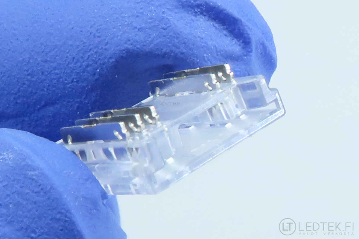 Mini-liittimen avulla LED-nauhat voidaan yhdistää siististi esimerkiksi alumiiniprofiilin sisällä tai kapeissa rakenteissa. Koska liittimessä ei ole erillistä johdinta, asennus pysyy matalana ja valoviiva jatkuu tasaisena ilman näkyviä katkoksia.